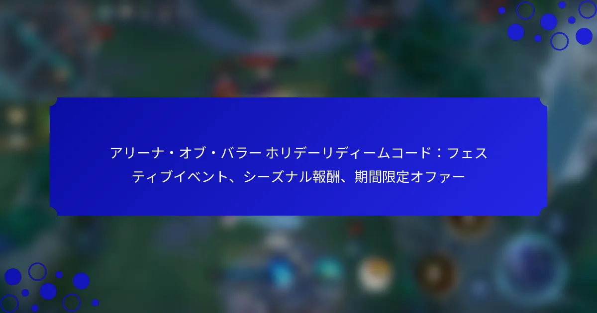 アリーナ・オブ・バラー ホリデーリディームコード:フェスティブイベント、シーズナル報酬、期間限定オファー