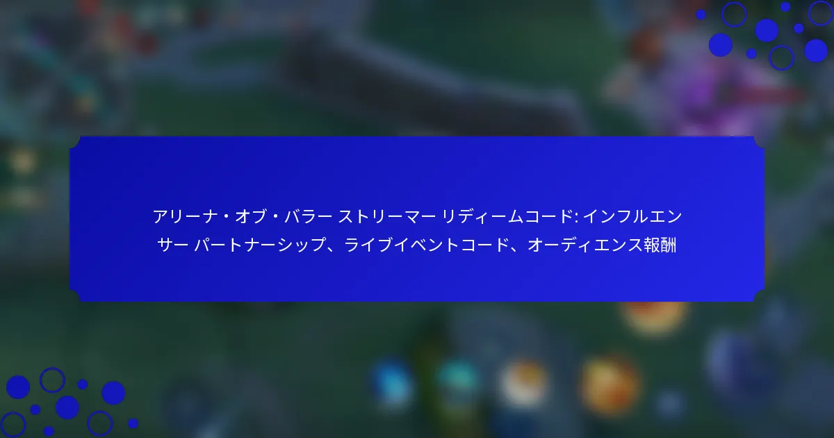 アリーナ・オブ・バラー ストリーマー リディームコード: インフルエンサー パートナーシップ、ライブイベントコード、オーディエンス報酬