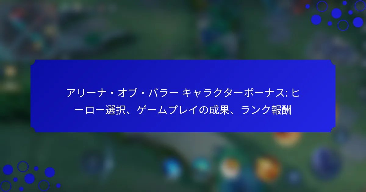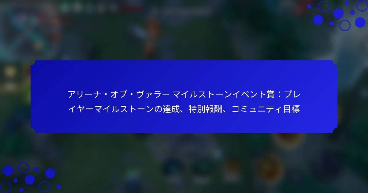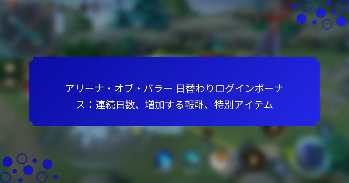 『アリーナ・オブ・バロー』の紹介ボーナスプログラムは、プレイヤーが友達をゲームに招待することで報酬を得る機会を提供します。紹介リンクやコードを使用することで、紹介者と新しいプレイヤーの両方が共有の利益を享受でき、ゲーム体験を向上させながらコミュニティの成長に貢献します。 『アリーナ・オブ・バロー』の紹介ボーナスプログラムとは? 『アリーナ・オブ・バロー』の紹介ボーナスプログラムは、プレイヤーが友達をゲームに招待することで報酬を得ることを目的としています。参加者は新しいプレイヤーを成功裏に紹介することでボーナスを獲得し、コミュニティの成長とエンゲージメントを促進します。 紹介プログラムの定義と目的 紹介プログラムは、既存のプレイヤーが友達を『アリーナ・オブ・バロー』に招待することを可能にし、より活気のあるゲームコミュニティを作り出します。プレイヤーにゲームを共有するインセンティブを与えることで、プログラムはプレイヤーベースを増やし、全体的なゲーム体験を向上させることを目指しています。 その主な目的は、ゲーム内での社会的相互作用を促進し、新規プレイヤーと既存プレイヤーの両方にとってより楽しい体験を提供することです。この取り組みは、プレイヤーに報酬を与えるだけでなく、『アリーナ・オブ・バロー』の周りにより強固なコミュニティを築く手助けもします。 紹介ボーナスシステムの仕組み 紹介ボーナスシステムに参加するには、プレイヤーは友達と共有できるユニークな紹介リンクを生成する必要があります。このリンクを使用して新しいプレイヤーがアカウントを作成し、特定のレベルに達すると、紹介者は報酬を得ることができます。 ボーナスには、ゲーム内通貨、限定スキン、またはその他の貴重なアイテムが含まれる場合があります。具体的な報酬は、成功した紹介の数や新しいプレイヤーが達成したレベルに基づいて異なる場合があります。 アカウントからユニークな紹介リンクを生成します。 ソーシャルメディアやメッセージングアプリを通じて友達とリンクを共有します。 友達が必要なマイルストーンに達したときに報酬を得ます。 参加者の資格基準 紹介プログラムに参加するには、プレイヤーはアクティブな『アリーナ・オブ・バロー』アカウントを持っている必要があります。さらに、紹介された友達は、以前にゲームに登録していない新しいプレイヤーでなければなりません。 年齢制限がある場合があり、参加者は地域の規制に応じて一定の年齢以上である必要があります。プレイヤーは、失格を避けるためにゲームの利用規約を遵守していることを確認する必要があります。 紹介プログラムに参加するメリット 紹介プログラムに参加することで、貴重なゲーム内報酬を得る機会を含むいくつかのメリットがあります。これらのボーナスは、ゲームプレイを向上させ、プレイヤーに他では簡単に入手できないユニークなアイテムを提供します。 さらに、友達を招待することで、友達と一緒にプレイすることでエンゲージメントや満足度が向上し、より楽しいゲーム体験につながります。ゲーム内で友達のコミュニティを築くことは、試合中のチームワークや協力を向上させることにもつながります。 コミュニティの成長とエンゲージメントへの影響 紹介プログラムは、プレイヤーが他の人を招待することを促すことでコミュニティの成長に大きく貢献します。この新しいプレイヤーの流入は、より多様で活発なプレイヤーベースを生み出し、全体的なゲーム環境を向上させます。 より多くのプレイヤーが参加することで、コミュニティのエンゲージメントは社会的相互作用、イベント、競技を通じて増加します。大きなプレイヤーベースは、開発者からのより頻繁なアップデートや改善にもつながり、関与するすべての人に利益をもたらします。 友達を『アリーナ・オブ・バロー』に招待するにはどうすればよいですか? 友達を『アリーナ・オブ・バロー』に招待するのは簡単なプロセスで、共有報酬を通じてゲーム体験を向上させることができます。紹介リンクやコードを活用することで、新しいプレイヤーをコミュニティに簡単に招き入れ、さまざまなインセンティブを享受できます。 招待を送るためのステップバイステッププロセス 友達を『アリーナ・オブ・バロー』に招待するには、以下の簡単な手順に従ってください: デバイスで『アリーナ・オブ・バロー』アプリを開きます。 設定またはコミュニティタブに通常ある紹介セクションに移動します。 ユニークな紹介リンクまたはコードを生成します。 このリンクまたはコードをソーシャルメディア、メッセージングアプリ、またはメールで友達と共有します。 友達が登録時にリンクまたはコードを使用するように促し、報酬を受け取れるようにします。…