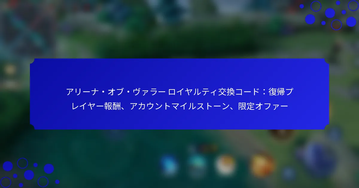 アリーナ・オブ・ヴァラー ロイヤルティ交換コード:復帰プレイヤー報酬、アカウントマイルストーン、限定オファー