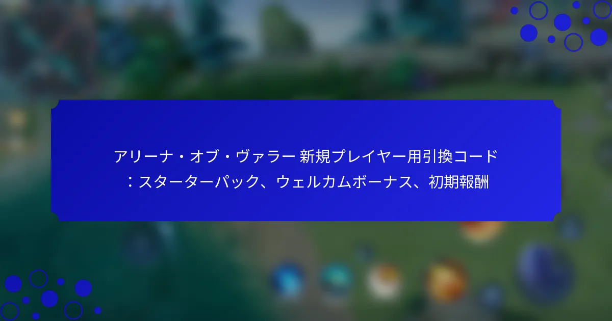 アリーナ・オブ・ヴァラー 新規プレイヤー用引換コード:スターターパック、ウェルカムボーナス、初期報酬