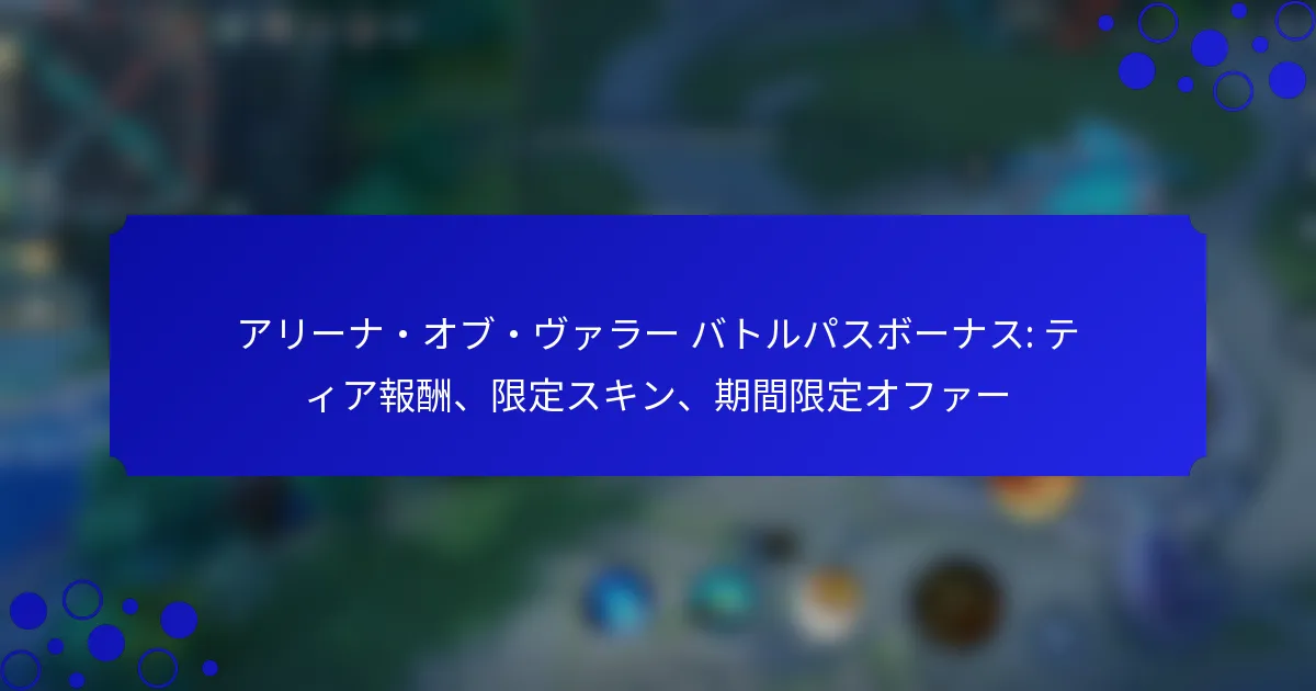 アリーナ・オブ・バローのバトルパスは、プレイヤーがゲーム内のチャレンジをクリアすることで報酬を得られる季節限定の機能です。プレイヤーは経験値を獲得してティアを進めることで、独占的なスキン、ゲーム内通貨、その他の貴重なボーナスをアンロックし、ゲーム体験を向上させます。各ティアはユニークな報酬を提供し、ゲームに参加し、キャラクターのカスタマイズを披露する魅力的な方法となっています。 アリーナ・オブ・バローのバトルパスとは何か、どのように機能するのか? アリーナ・オブ・バローのバトルパスは、プレイヤーがさまざまなゲーム内チャレンジをクリアすることで報酬を得ることができる季節限定の機能です。プレイヤーは経験値を獲得してティアを進め、独占的なスキンやその他のボーナスをアンロックします。 バトルパスシステムの概要 アリーナ・オブ・バローのバトルパスシステムは、プレイヤーに報酬を得るための構造化された方法を提供することで、ゲーム体験を向上させるように設計されています。各シーズンは新しいバトルパスを導入し、ユニークなテーマやアイテムを提供し、プレイヤーがゲームにより深く関与することを促します。 プレイヤーは無料のバトルパスとプレミアムバトルパスのいずれかを選択できます。プレミアム版は、無料プレイヤーには提供されない追加の報酬や独占コンテンツを提供し、熱心なゲーマーにとって魅力的な選択肢となっています。 バトルパスの構造とティア バトルパスは複数のティアに分かれており、それぞれ異なる報酬を提供します。通常、シーズンには約50のティアがあり、プレイヤーはチャレンジをクリアして経験値を獲得することでこれらのティアをアンロックします。 無料ティア:すべてのプレイヤーが利用可能で、基本的な報酬を提供します。 プレミアムティア:プレミアムバトルパスを購入したプレイヤーが利用可能で、独占的なスキンやアイテムを特徴としています。 プレイヤーは進行するにつれて、アバター、エモート、スキンなどのさまざまな報酬を受け取ることができ、ゲームプレイやカスタマイズオプションを向上させます。 バトルパスを進める方法 バトルパスを進めるには、各シーズンごとに異なる特定のチャレンジをクリアする必要があります。これらのチャレンジには、試合に勝つこと、特定のスコアを達成すること、特定のヒーローを使用することが含まれる場合があります。 プレイヤーはクリアしたチャレンジごとに経験値(XP)を獲得し、全体の進行に寄与します。定期的なプレイやイベントへの参加は、このプロセスを大幅に加速させることができます。 進行を最大化するために、プレイヤーは日々のチャレンジや週ごとのチャレンジをクリアすることに集中すべきです。これらは通常、最も多くのXPを提供し、ティアを迅速に進めるのに役立ちます。 バトルパス購入のメリット バトルパスを購入することで、ゲーム体験を向上させるさまざまなメリットが得られます。プレミアムプレイヤーは、無料プレイヤーには提供されない独占的なスキンやアイテムにアクセスでき、より大きなカスタマイズが可能になります。 独占スキン:試合でプレイヤーを際立たせるユニークなデザイン。 追加報酬:無料ティアに比べて、より頻繁で多様な報酬。 さらに、プレミアムバトルパスにはXP獲得の増加などのボーナスが含まれていることが多く、ティアを進めやすくし、ゲームをより楽しむことができます。 バトルパスのためのゲーム内通貨の要件 プレミアムバトルパスを購入するには、通常「ジェム」と呼ばれるゲーム内通貨を消費する必要があります。バトルパスのコストはシーズンごとに若干異なる場合がありますが、通常は妥当な範囲内に収まります。 プレイヤーは、ミッションをクリアしたり、イベントに参加したり、リアルマネーで購入したりすることでジェムを獲得できます。バトルパスへの投資を最大化したいプレイヤーにとって、通貨システムを理解することは重要です。 各シーズンごとに独占的な報酬にアクセスできるように、バトルパス専用にジェムを貯めることをお勧めします。これにより、全体的なゲーム体験が向上します。 アリーナ・オブ・バローのバトルパスにおけるティア報酬は何ですか? アリーナ・オブ・バローのバトルパスは、プレイヤーがさまざまなティアを進むにつれて報酬を得るための構造化された方法を提供します。各ティアは、独占的なスキン、ゲーム内通貨、その他の貴重なアイテムを含む特定の報酬をアンロックします。 各ティアの報酬リスト バトルパスは複数のティアに分かれており、それぞれがユニークな報酬セットを提供します。プレイヤーは進むにつれて、スキン、エモート、通貨などのアイテムを受け取ることが期待できます。通常、約50のティアがあり、報酬はプレイヤーが高いティアに進むにつれて徐々に魅力的になります。 ティア1:基本