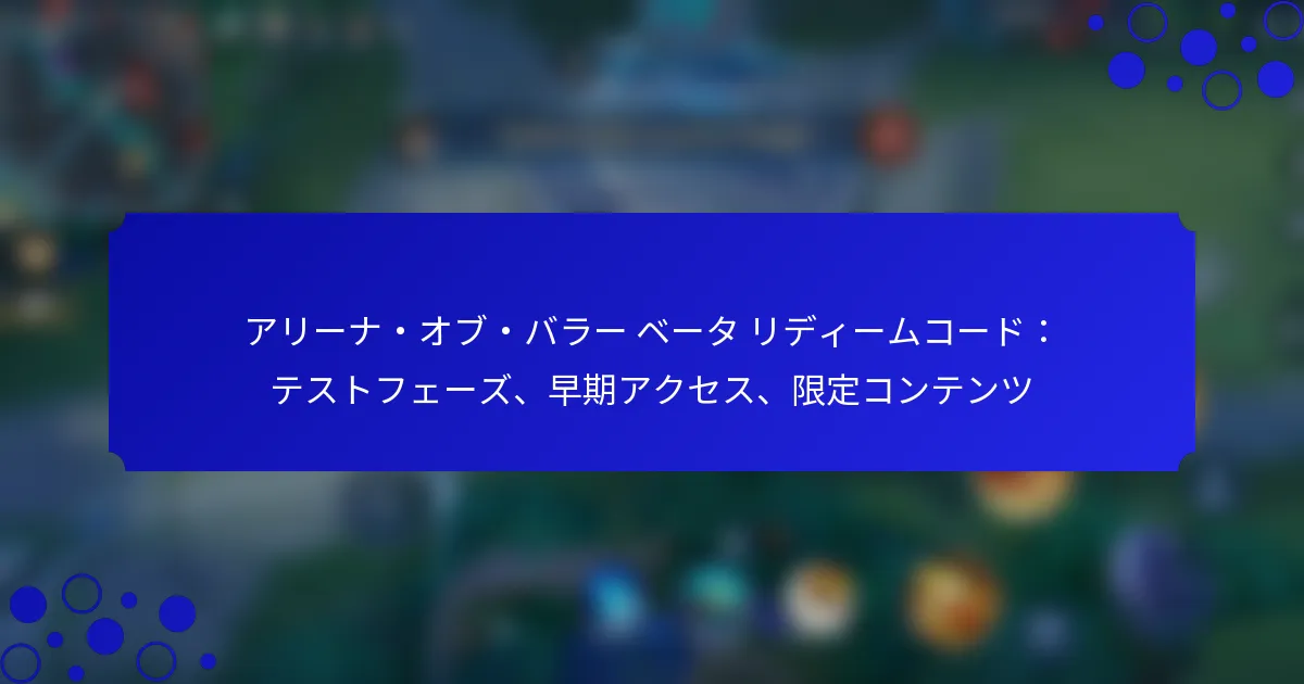 アリーナ・オブ・バラー ベータ リディームコード:テストフェーズ、早期アクセス、限定コンテンツ