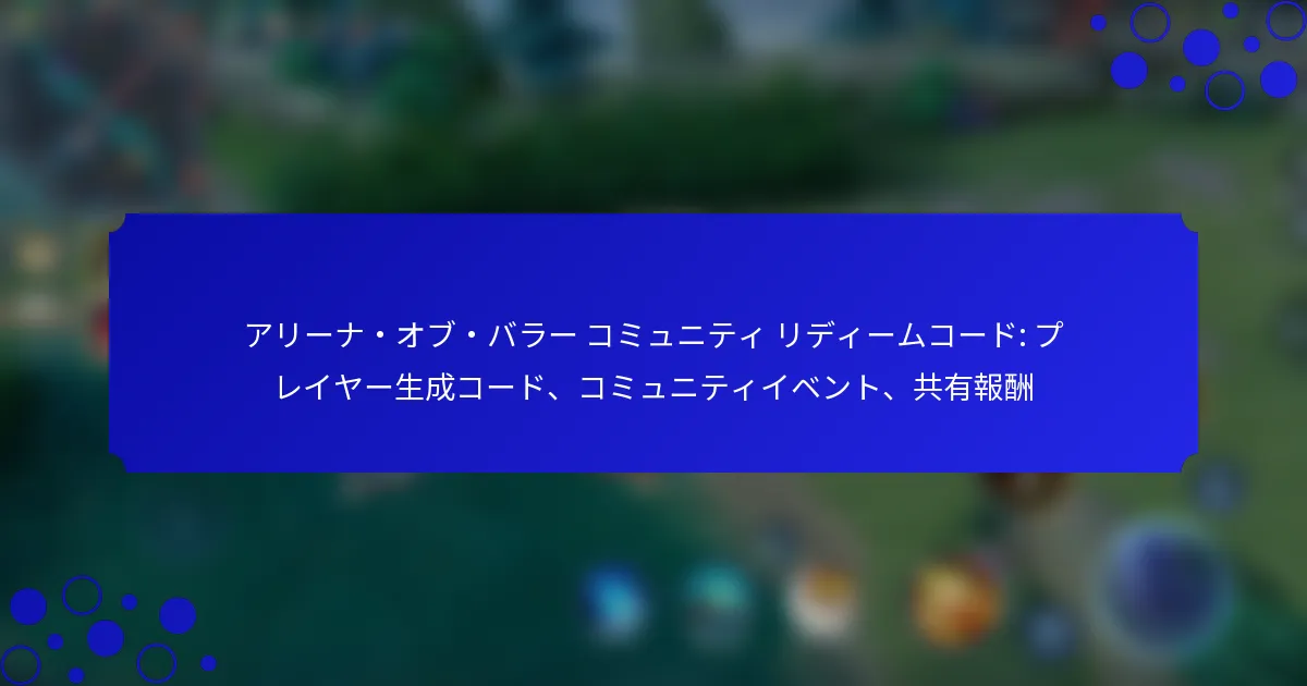 アリーナ・オブ・バラー コミュニティ リディームコード: プレイヤー生成コード、コミュニティイベント、共有報酬