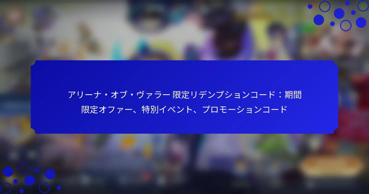 アリーナ・オブ・ヴァラー 限定リデンプションコード:期間限定オファー、特別イベント、プロモーションコード